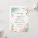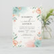 Delicate watercolor washes in soft coral and muted teal create a romantic, airy backdrop. Lush botanical accents with blooming florals and leafy branches evoke a whimsical, gentle atmosphere perfect for a serene occasion.