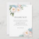 Add your custom thank you cards to Bridal Shower with these elegant design with a decoration of soft blue and pink flowers and elegant green foliage at the corners. Card revers in editable dusty blue