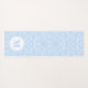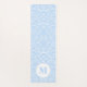 A lovely yoga mat with a personal and feminine touch in soft blue and white hues with monogram.