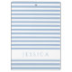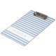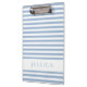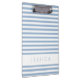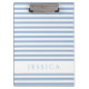 Soft blue and white striped pattern clipboard featuring a personalised name print on front and back. For matching blue and white striped stationery and more colour options check out the full striped stationery collection below and visit Dots & Stripes Pattern Design Studio by Maggie B for more personalised stationery.