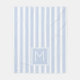 Soft Blue and White Ticking Stripe Monogram Fleece Blanket