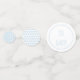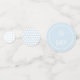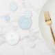 A soft blue and white collection of table confetti that includes two dot patterns and two square patterns. The words are customisable.