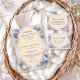 This romantic blueberry garden collection features soft watercolor blueberries paired with delicate white florals and elegant blue bows, all framing a warm parchment-style center. The palette blends ivory, blush, and dusty blue tones for a timeless, storybook aesthetic. Ideal for a sweet, refined celebration with a floral garden feel and classic charm.