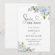 Soft Blue Botanical Wedding Save The Date Invitation