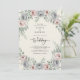 This design features a delicate watercolor palette of soft blue and blush pink. Elegant roses and silver dollar eucalyptus leaves create a romantic arrangement. The aesthetic evokes a serene and ethereal mood, perfect for a vintage-inspired spring or summer event. Muted sage greenery adds a timeless botanical touch to the artistic layout.