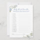 Blue floral “Baby Word Scramble” downloadable baby shower game card featuring a stunning watercolor floral design with soft delicate pastel dusty blue and white flowers, such as hydrangea. The playful handwritten font adds a charming vintage touch to the design and complements the florals perfectly.