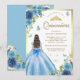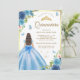 Soft Blue Floral Dress Butterfly Gold Quinceanera Invitation
