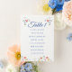 A delicate seating chart card featuring soft blue typography paired with blue and yellow floral accents. Designed with a clear numeric table layout, this piece feels elegant, airy, and timeless—perfect for weddings that lean classic with a fresh botanical touch.