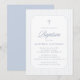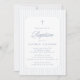 Light blue gray striped baptism invitation with classic cross and traditional framed layout. This simple and elegant baptism invitation is suitable for a baby boy christening, baptism ceremony, or religious celebration. The timeless striped design works for modern, traditional, and minimalist baptism themes. Ideal for parents looking for a clean and classic baptism invitation for their son.