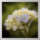 Blue hydrangea flower just coming into bloom. Flower photography by Susan with a subtle vintage tint.