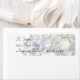 Soft blue hydrangeas and white roses in subtle background. Name and address text can be customised