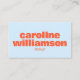 This business card features your name in big, bold orange letters on a soft blue front with your industry below. The back is a clean soft blue with just a QR code — scan it and it goes straight to your website, portfolio, or wherever you want to send people. It's a great option if your work lives online and you'd rather point someone to a link than list out every contact detail on the card. Simple, modern, and easy to update if your information changes.
