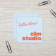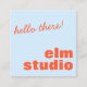 This square business card features "hello there!" in a fun handwritten script at the top, with your business name in big bold orange letters below on a soft blue background. The back has your full contact details in the same orange type. It's a warm, friendly card that works especially well for anyone in a people-first business — a photographer, coach, yoga instructor, or creative who wants clients to feel comfortable right from the start. The square format makes it stand out, and the greeting does the rest.