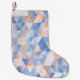 Triangles intertwine in soft blues and oranges. An artful masterpiece of geometric harmony.