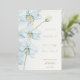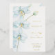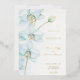 Wedding Foil Invitation with elegant delicate sprigs from delicate blue orchid flowers and light green buds, blue pastel coloured spring or summer softness, romantic floral orchids bouquet. Cute flowers botanical digital watercolor painting. Graceful floral blossom botany Wedding Foil Invitation. Soft Blue Orchid Collection.
