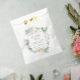 Elegant flowers, leaves, in soft watercolor palette of blue, white pink and green with orange accents adorn this romantic and elegant WEDDING FAVOR BAG WITH THANK YOU MESSAGE AND BRIDE AND GROOM'S NAME AND WEDDING DATE.
