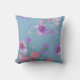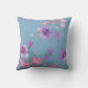 Soft Blue pink silk flowers green leaves fabric Cushion