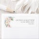These elegant botanical return address labels feature a left border of watercolor flowers and foliage in pink blue ivory and white and your return address in classic lettering.