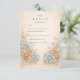 This romantic wedding design features soft blue and peach florals arranged in a delicate garden composition. Inspired by wildflowers and classic botanical illustrations, the artwork blends muted neutrals with airy florals for a timeless, refined look. The elegant layout and gentle color palette make it ideal for couples planning a nature-inspired wedding with a graceful, understated aesthetic that feels both modern and enduring.