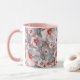 Delicate pink flowers with golden centers are arranged against a soft, pastel backdrop. The lush green leaves intertwine elegantly among the blossoms, creating a harmonious and serene floral pattern.