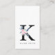 SOFT BLUSH BLUE FLORAL ALPHABETS NAME LETTER K BUSINESS CARD