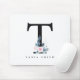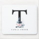 SOFT BLUSH BLUE FLORAL ALPHABETS NAME LETTER T MOUSE PAD