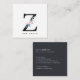 SOFT BLUSH BLUE FLORAL ALPHABETS NAME LETTER Z SQUARE BUSINESS CARD