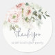 Soft Blush Peony Leafy Botanical Floral Thank You Classic Round Sticker