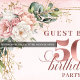 Perfect for photo backdrops, party entrances, dessert tables, or stage décor, this versatile design works beautifully as a fabric tapestry, party banner, or large wall display. The delicate floral artwork and botanical greenery create a feminine and modern look, making it ideal for women’s 50th birthday parties, elegant garden celebrations, or chic indoor events.