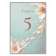 Bring a fresh and romantic vibe to your reception with these aqua table number cards. Featuring delicate floral accents, this design adds a modern yet dreamy touch to your wedding decor.