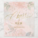 A soft floral of roses in blush pink and sage green is the focal point for many of the pieces of this wedding suite that also features elegant script text and modern design layouts. The wedding wine label shown here has a border of roses on a muted, watercolor background with 'Cheer's calligraphy and your initials and wedding date in gold. Easily enter your details using the provided template. View the collection link on this page to see all of the matching items in this beautiful design or search ID828 to see additional colour choices for this design.