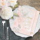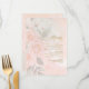 A soft floral of roses in blush pink and sage green is the focal point for many of the pieces of this wedding suite that also features elegant script text and modern design layouts. The wedding menu shown here has a side border of roses and a beautiful watercolor abstract background dusted with gold on the flip side. Easily enter your menu details using the provided template. View the collection link on this page to see all of the matching items in this beautiful design or search ID828 to see additional colour choices for this design.