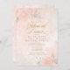 A soft floral of roses in blush pink and sage green is the focal point for many of the pieces of this wedding suite that also features elegant script text and modern design layouts. The wedding rehearsal dinner invitation shown here has corner borders of roses and a beautiful watercolor abstract dusted with gold on the flip side. Easily enter your event details using the provided template. View the collection link on this page to see all of the matching items in this beautiful design or search ID828 to see additional colour choices for this design.