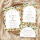 A sophisticated botanical design featuring rich green foliage and soft ivory blooms, framed within a timeless arched layout. The deep, nature-inspired tones bring a sense of depth and refinement, while the clean typography keeps the overall look elevated and effortless.