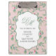 Soft Botanical Wedding Clipboard – Custom Floral Monogram Planner Board for Bride, Organiser, or Ceremony Prep Keep your wedding details beautifully organised with this Soft Botanical Wedding Clipboard, featuring romantic watercolor florals and a custom monogram design. Perfect for brides, wedding planners, or day-of coordinators who want elegance and function in one place. Use it to hold checklists, timelines, or vendor notes during your ceremony prep or planning meetings. A stylish and personalised accessory for any floral-themed wedding suite or as a thoughtful gift for the bride-to-be.
