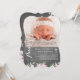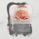This Baptism Invitation photo card features an elegant layout of soft pink peonies, a lace cross, chalkboard background, and your child's name in a pretty script font.
