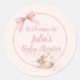 Soft Bunny Welcome Design with Pastel Ribbon Classic Round Sticker