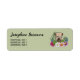 Destei's original cartoon illustration of a cute Soft-coated Wheaten Terrier breed dog's head close-up surrounded by colourful summer wildflowers. There is a blush pink flower, a purple flower, a dark pink flower and a white daisy flower together with some green leaves and branches. The background colour is green with a light polka dot pattern. The background colour can be changed to any other colour and the polka dot pattern can be removed, if so wished. There are also two personalizable text areas.