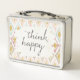 This is a standard metal lunchbox that appears to work just fine. We designed this box ourselves with an uploaded photo and custom text on the front and back. It looks absolutely beautiful except the front of the lunchbox is not centered like it shows in the photo. The print borders don't align with the inset flat part of the box where the preview photo online showed it perfectly centered in there. The back looks nice and centered though.