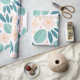 A gentle and refreshing design featuring delicate peach blossoms, lush green leaves, and tiny coral accents on a crisp white background. The harmonious arrangement exudes a natural and serene charm.
