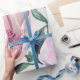 Embrace elegance with this seamless floral watercolor pattern. Featuring delicately detailed flowers in pastel shades of pink, purple, and blue, along with gentle green leaves and vines, this light and airy design is perfect for adding a touch of grace to any gift.