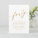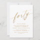 Simple-but-elegant 40th birthday invitations with heading "forty" text in a script font. Faux gold on an airy white background.