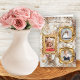 This composition emphasizes baroque floral styling and vintage gold frames through intricate scrollwork, softly weathered textures, and harmonious pastel hues. The floral arrangements feel abundant yet graceful, allowing framed photo spaces to remain visually prominent while blending seamlessly into the surrounding botanicals. The palette transitions smoothly from warm blush to creamy neutrals, with gold accents adding a luminous glow that enhances the overall sense of nostalgia and tenderness.