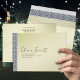 This elegant invitation envelope features a soft gold background paired with a shimmering diamond-textured vertical strip for a refined, modern finish. The warm gold tone brings a sense of luxury and celebration, while the diamond accent adds subtle sparkle without overwhelming the clean layout. Designed to complement upscale wedding and anniversary stationery, this envelope offers a polished presentation with stylish address typography, making it ideal for formal events and milestone celebrations.
