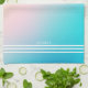 Soft blue and pink gradient iridescent background, white stripes accent, with a custom white monogram typography.