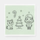 Soft Green Cute Girl and Cat Christmas Design Napkin