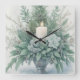 Soft Green Tones Christmas Candle Square Wall Clock