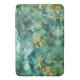 Labradorite inspired watercolor artwork in soft greens, blues and gold wildflowers