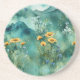 Soft Green watercolor landscape wildflowers Coaster