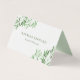 Folded business card with greenery in soft shades of green for a therapist, psychologist, or similar. Your name and title on the cover. Inside the folded therapist business card you can add a text about yourself or your business along with a photo of yourself. Add contatc info too and, on the back, a QR code. Professional folded business card with soothing greenery personalised with contact info, profile photo, QR code and an about.